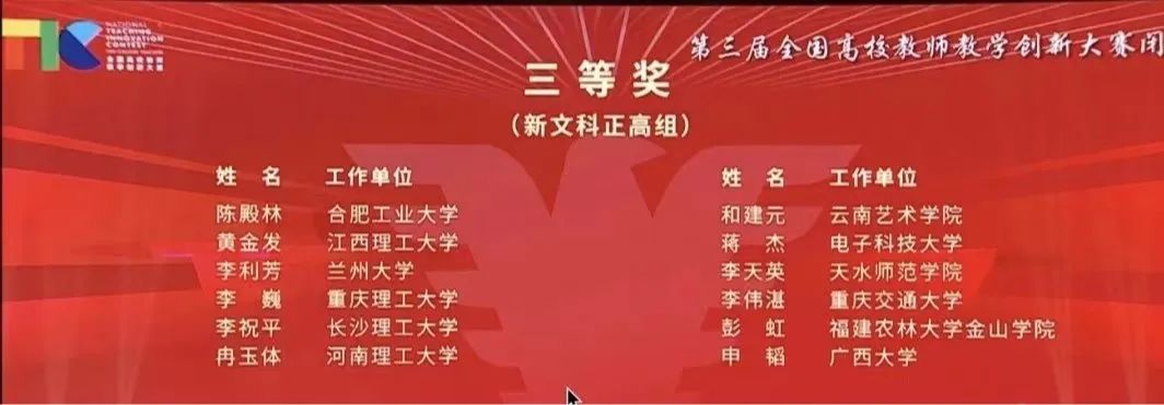 近日,第三届全国高校教师教学创新大赛获奖名单揭晓,开云官网教师李天英荣获新文科正高组三等奖。