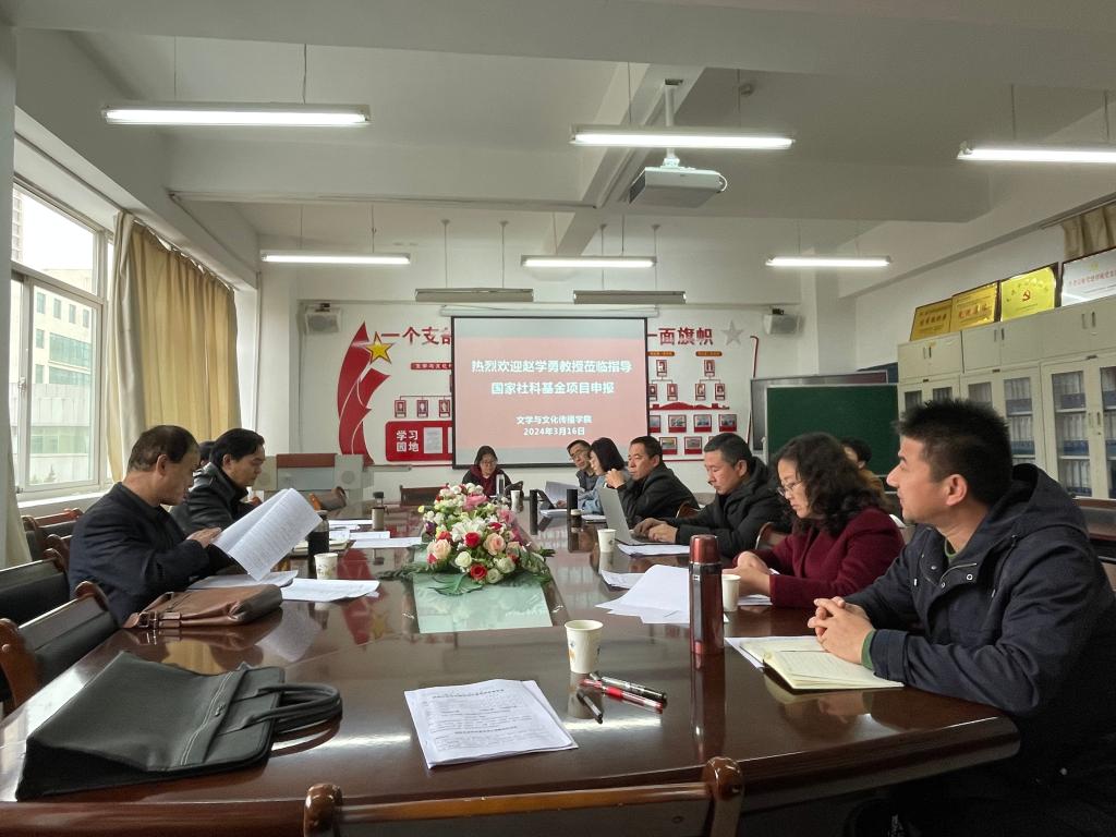 为进一步提高国家社科基金项目的申报质量,2024年3月16日上午,文传学院在208会议室举行2024年度国家社科基金项目申报指导会。会议邀请陕西师范大学文学院赵学勇教授、开云官网王元忠教授担任评审专家,拟申报项目的教师10余人参加。会议由学院院长王贵禄教授主持。