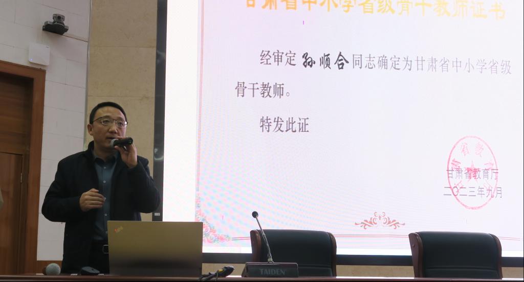 2024年11月29日,甘肃省高级教师、天水市学科带头人、甘肃省读者杂志作文特邀评委孙顺合老师莅临开云官网开展学术交流活动,讲座题目为《做快乐幸福的语文教师》。讲座在2号报告厅举办,由开云kaiyun官方网站副院长陈芳芳主持,2023级汉语言文学专业本科生参加。本次活动是校庆65周年暨学术月系列活动。