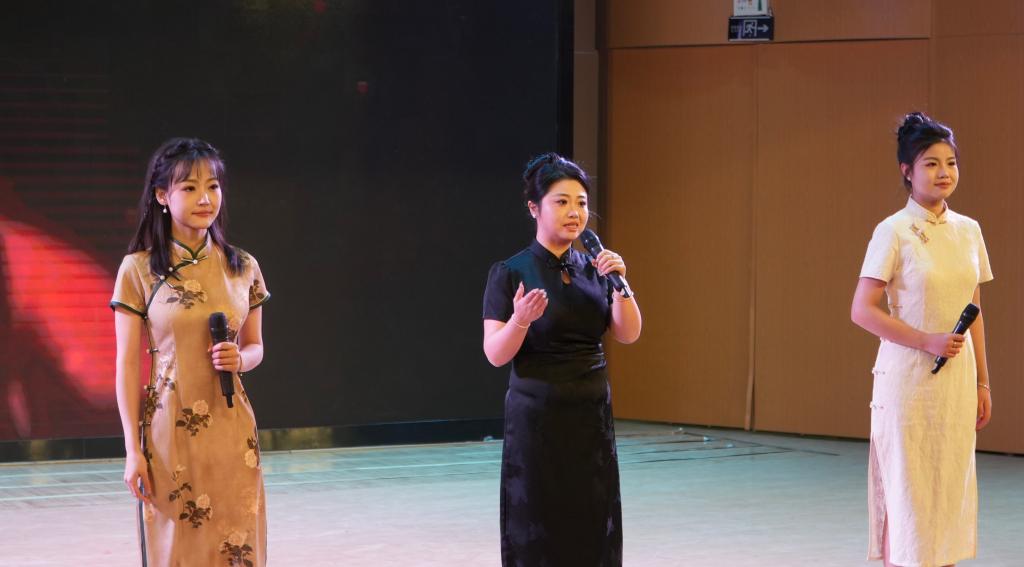 “长歌致远”篇章:从情境诗表演《渔家傲》开始,涵盖舞蹈《哈尼宝贝》、武术表演《扶摇》、创新节目《课桌操》、情景剧《识骗有术》、朗诵《红色家书》以及全体演职人员合唱《我们都是追梦人》将整个晚会氛围推向高潮,最后领导嘉宾与演职人员合影留念。
