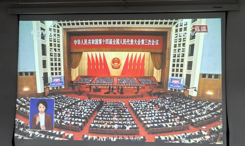 开云官网研究生及本科生代表共计50余人,在4号教学楼601室集体观看此次会议开幕会直播。