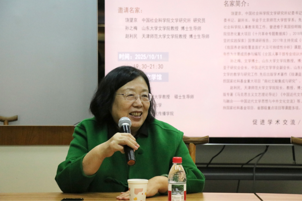 讲座伊始,中国社会科学院文学研究所纪委书记、副所长饶望京围绕中国社会科学院及文学所情况、考博建议与研究生能力培养展开分享。饶望京首先明确了中国社会科学院的定位,指出其是由党中央直管、国务院直属的正部级事业单位,核心定位为马克思主义研究前沿阵地、中央决策服务智库以及哲学社会科学最高学术机构。在具体机构概况方面,饶望京提到,文学所于1953年在北京大学集合全国力量成立,拥有众多学术前辈,且在1964年分出了外国文学研究所。关于社科院大学的发展历程,他介绍道,1978年社科院成立研究生院,2017年正式成立中国社会科学院大学并开设本科专业,文学所的研究员会同时兼任该校老师,参与教学工作。针对有志报考社科院大学博士的研究生,饶望京给出了针对性建议:考生需密切关注社科院大学官网,充分了解意向导师的研究方向与动态;在博士面试环节,要着重提升自身的表达能力、逻辑思维能力,同时加深对学术热点问题的理解,确保回答具备深度与专业性。最后,饶望京强调研究生需注重综合能力培养,包括锻炼文字与口头表达能力,主动关注社会形势与政治动态,积极参与各类社团活动和调研项目,努力成长为符合学术与社会需求的复合型人才。