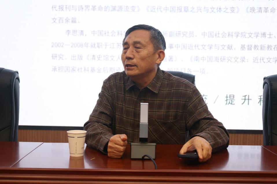 对此,王贵禄教授评议道:胡教授探讨了近代文学作为古典与现代文学过渡阶段的独特价值,指出其为研究提供了丰富素材,但当前文学史叙述对此段时期描绘不够清晰,亟需更深入的研究。尽管现代文学研究文献浩繁,近代文学研究领域仍存在未被充分挖掘的潜力,强调学术界应重视经典与基础资料的研究,而非仅仅追求最新成果。此外,胡教授在发言中特别提到了报刊研究在近代文学研究中的重要性,王教授借此鼓励大家研究时跨学科方法的运用,以促进对该时期文学更全面、深刻的理解,呼吁学生在这些领域进行更多探索与思考。