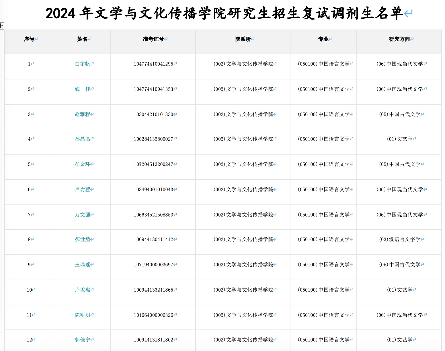 2024年开云kaiyun官方网站研究生招生复试调剂生名单