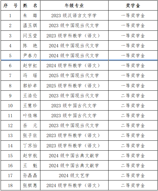2025年研究生学业奖学金推荐人选公示