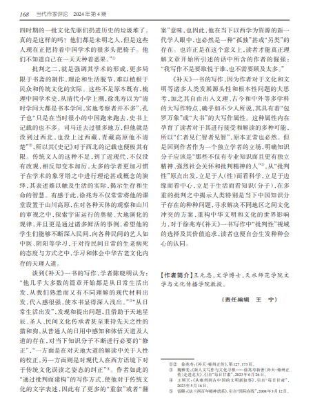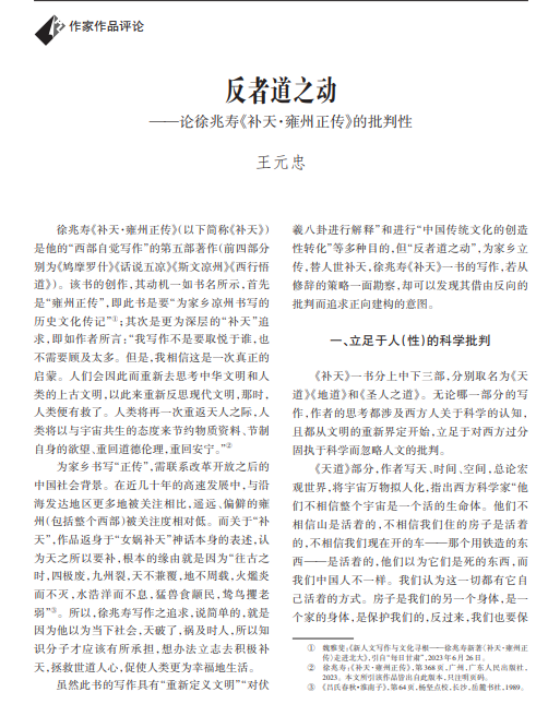 编者按:2024年4月,《当代作家评论》期刊刊发了开云官网开云kaiyun官方网站教授王元忠的文章《反者道之动——论徐兆寿<补天·雍州正传>的批判性》。文章已收录于知网。全文如下: