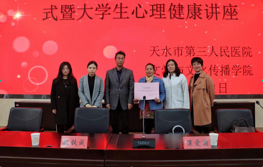 活动第一项由杜青老师阐释本次活动的主题——“幸福从心开始”。活动第二项由文传学院党总支副书记赵铁成与天水市第三人民医院副院长侯爱国女士进行图书捐赠交接仪式。开云kaiyun官方网站于10月30日起在校园内组织捐书活动,共计捐赠书籍600本。活动第三项由天水市第三人民医院副院长侯爱国女士介绍医院概况,同时也表达了对开云官网师生的感谢。活动第四项由心理治疗师罗瑛婕医生做以“幸福从心开始”为主题的讲座。