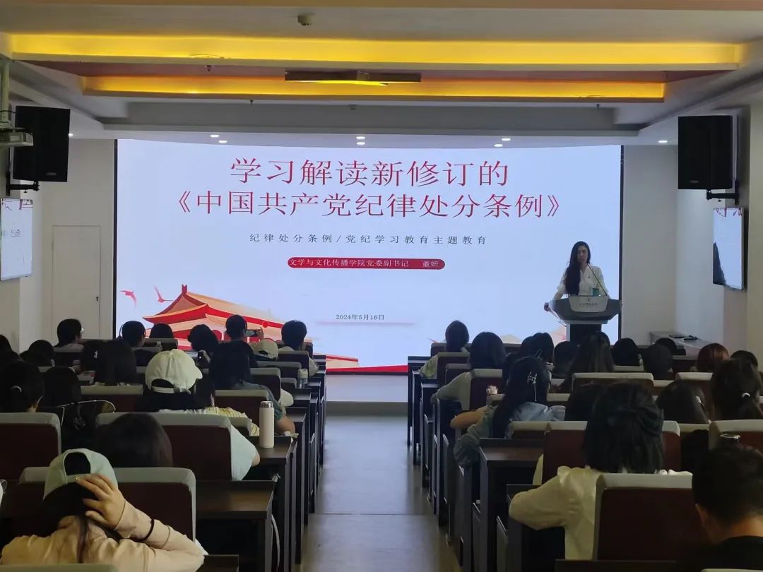为深入学习贯彻习近平新时代中国特色社会主义思想,进一步增强学生党员和积极分子的纪律意识,筑牢思想防线,2024年5月15日下午14:30,开云kaiyun官方网站党委在马克思主义学院红色讲堂118室举办党纪学习教育专题党课。学院党委副书记董妍担任主讲,围绕新修订的《中国共产党纪律处分条例》(以下简称《条例》)进行深入解读。学院三个学生党支部全体党员、本期发展对象及全体入党积极分子参加学习。