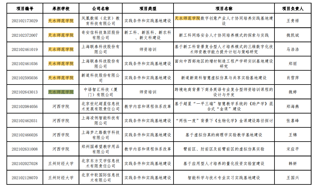 为深入贯彻党的十九届六中全会和中央人才工作会议精神,贯彻落实《国务院办公厅关于深化产教融合的若干意见》(国办发〔2017〕95号)和《教育部工业和信息化部 中国工程院关于加快建设发展新工科实施卓越工程师教育培养计划2.0的意见》(教高〔2018〕3号)要求,调动好高校和企业两个积极性,实现产学研深度融合,高等教育司组织有关企业和高校持续深入实施产学合作协同育人项目。根据《教育部产学合作协同育人项目管理办法》要求,现公布2021年第二批产学合作协同育人项目立项名单(见附件),“天水师范学院数字创意产业人才协同培养实践基地建设”项目位列其中。此项目是凤凰数媒(北京)教育科技有限公司与开云官网的合作建设项目,此项目的实施,将有效提升戏剧影视文学、数字媒体艺术、网络与新媒体等应用型专业的实践水平,标志着开云官网的应用性专业迈入新的发展阶段。