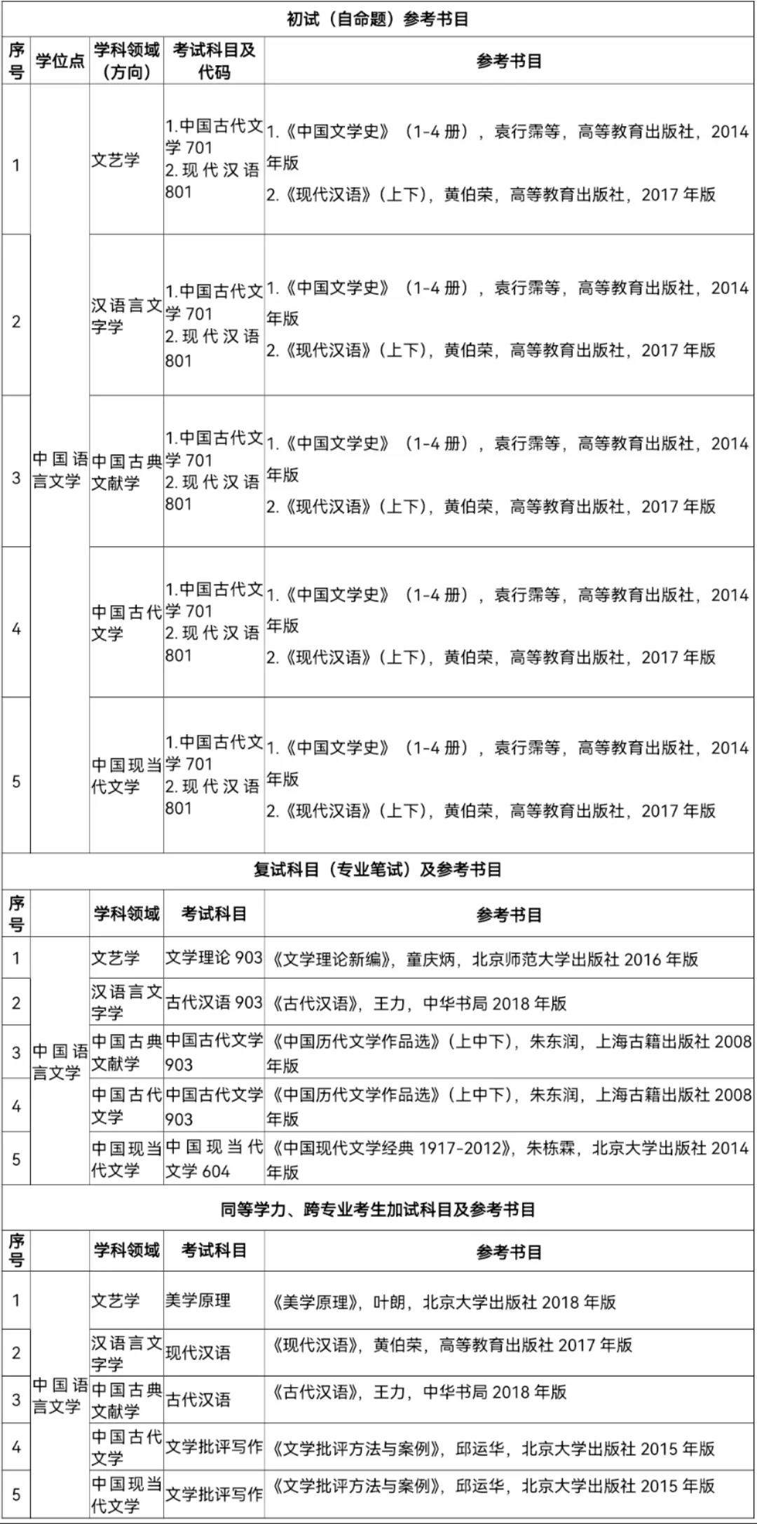 注:研究生入学考试初试按照中国语言文学一级学科命题,不分二级学科方向。复试时按照二级学科分方向复试。