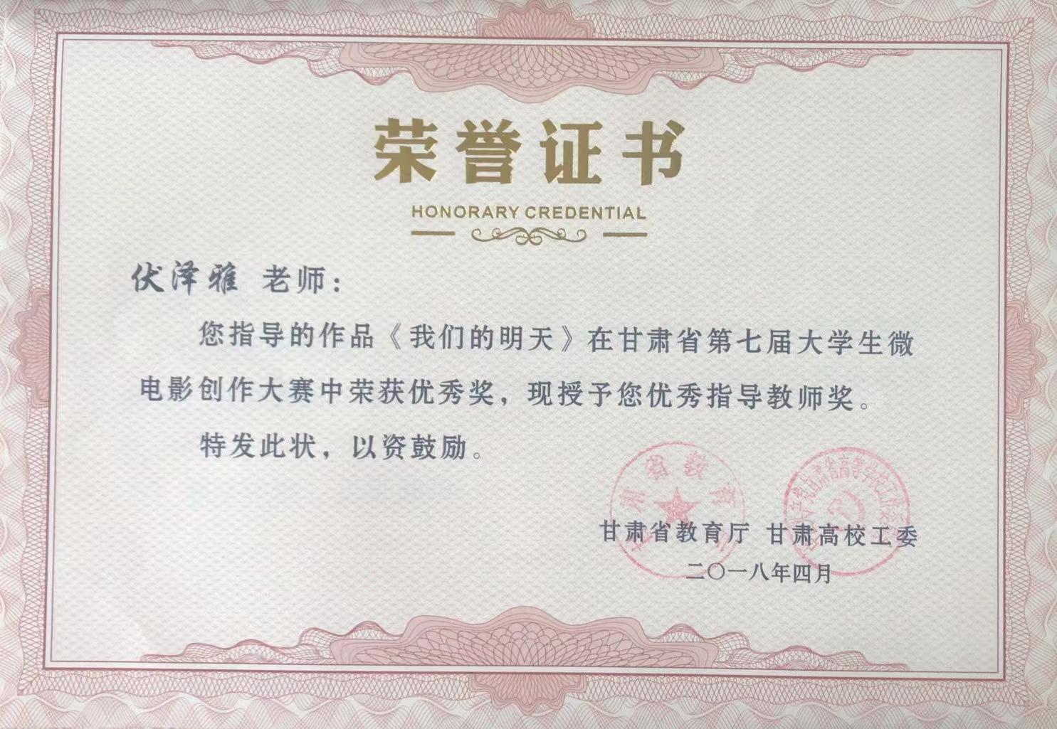 伏泽雅,男,1994年出生,现任广东工程职业技术学院人工智能学院团委书记。内蒙古师范大学国交中心外聘教师、蒙古国电影艺术学院硕士研究生导师、蒙古国可汗国际学院外聘顾问。被广东省教育厅、甘肃省教育厅授予优秀指导教师荣誉称号、指导学生作品荣获教育部三等奖、教育厅一二等奖自2016年至今,先后指导学生团队参赛各类国赛、省赛,荣获国家级一等奖一项、国家级三等奖一项、国家级优秀作品奖奖一项,广东省一等奖两项、二等奖五项、三等奖一项、优秀奖两项。指导学生在互联网+创新创业大赛广东赛区比赛中荣获省级优胜奖。先后被甘肃省教育厅、广东省教育厅授予“优秀指导教师”荣誉称号。