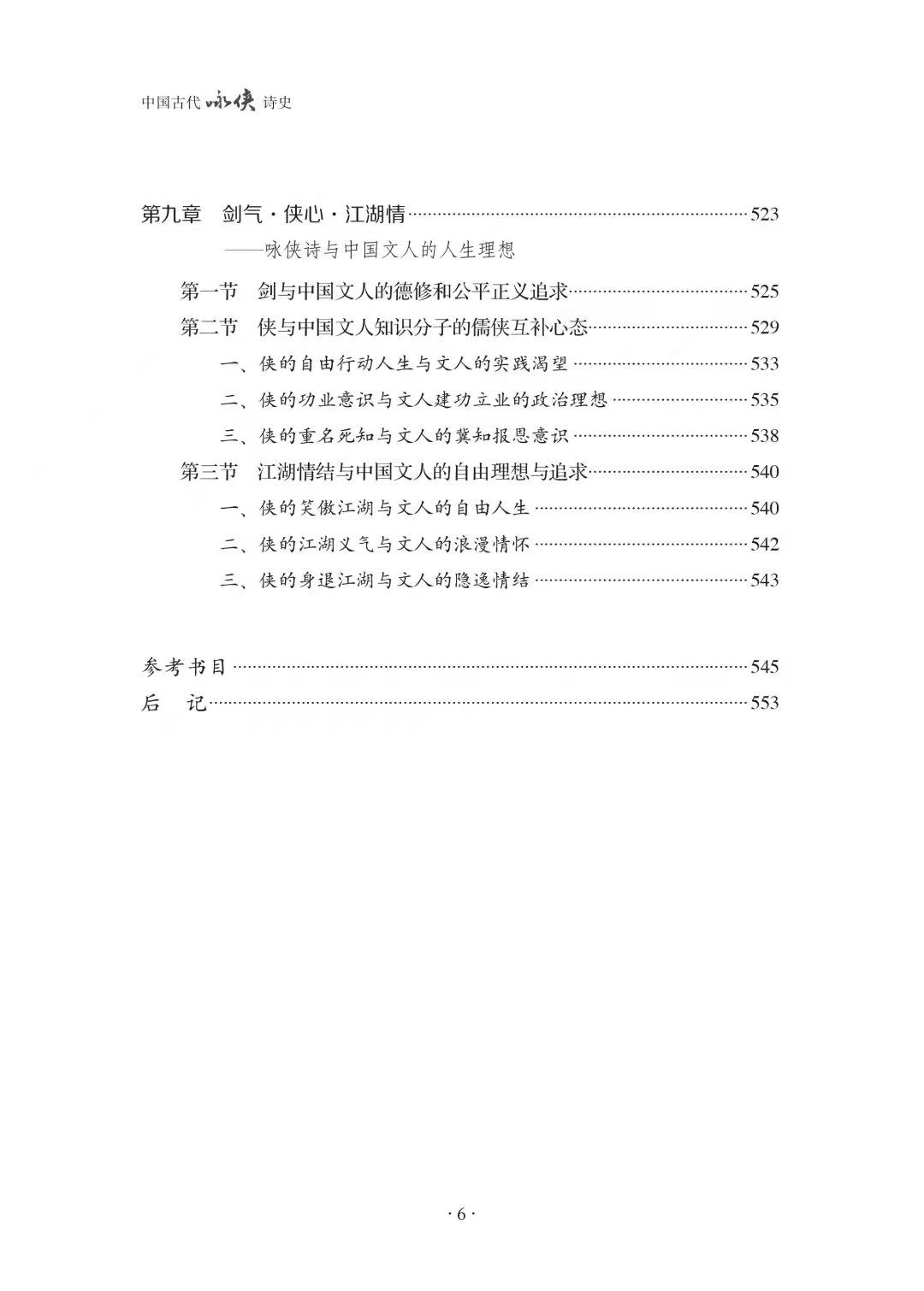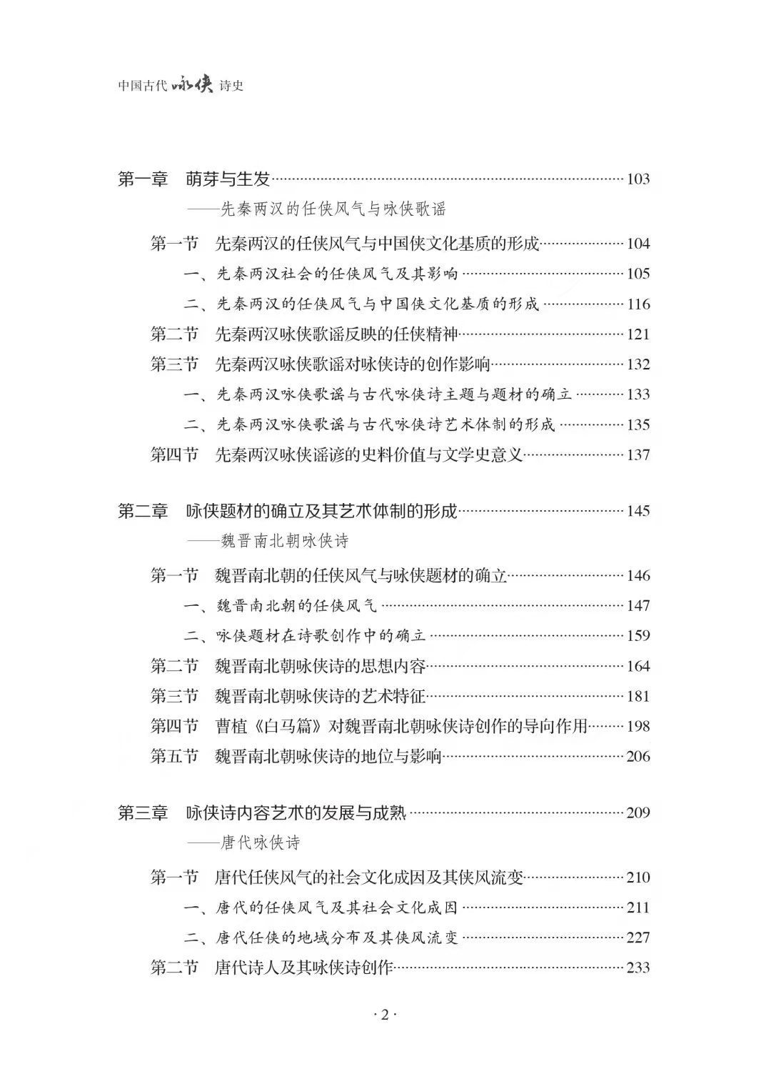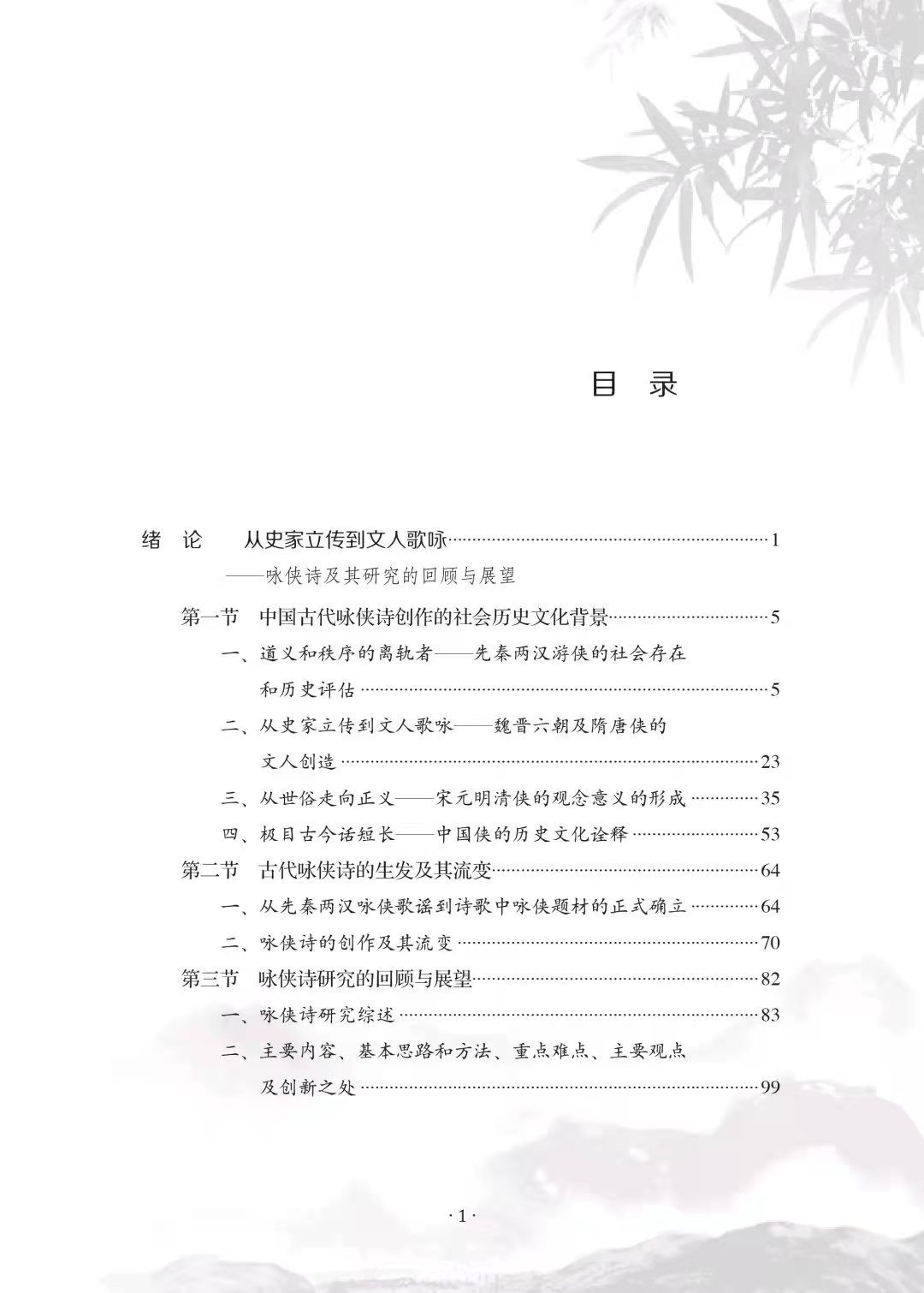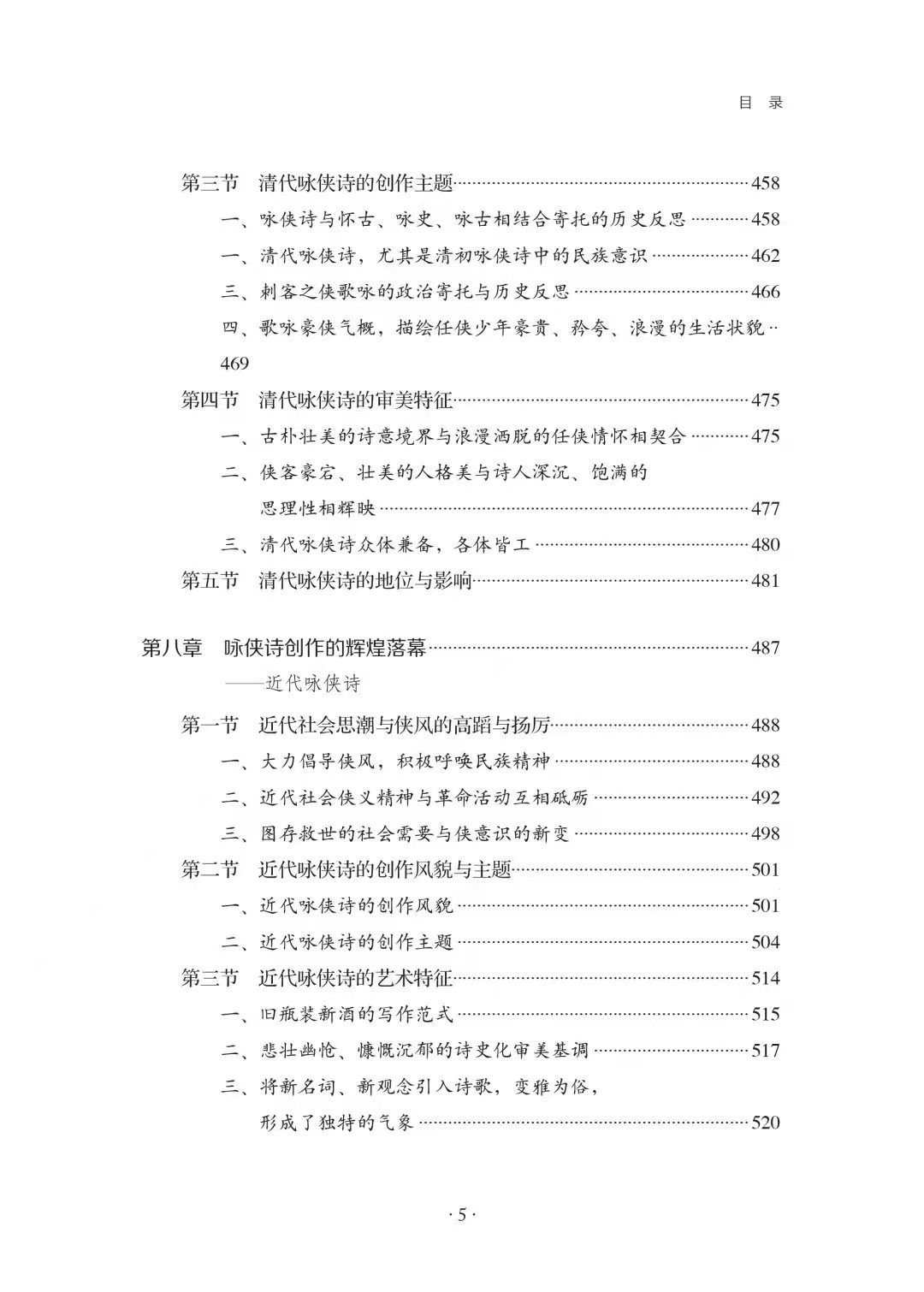 《中国古代咏侠诗史》(人民出版社 2021-12-28 在对历代咏侠诗搜集整理和校注的基础上,立足中国古代任侠风气与咏侠诗的发展变迁,首次对我国历代咏侠诗的任侠精神、文化内涵、诗美理想、发展流变等进行了全面系统的研究,挖掘出咏侠诗创作发展及其继承创新的动因和规律,勾勒出中国古代咏侠诗创作发展的历史沿革与新变,对古代咏侠诗的发生、发展、演进的现实动因、发展趋势、历史轨迹、人格精神及其审美特质作了深刻阐述,并探索建立了历代咏侠诗纵向发展的框架体系,构建起历代咏侠诗的发展流变史,揭示了古代咏侠诗的文学价值、现实意义以及在我国诗歌发展中的地位与影响。